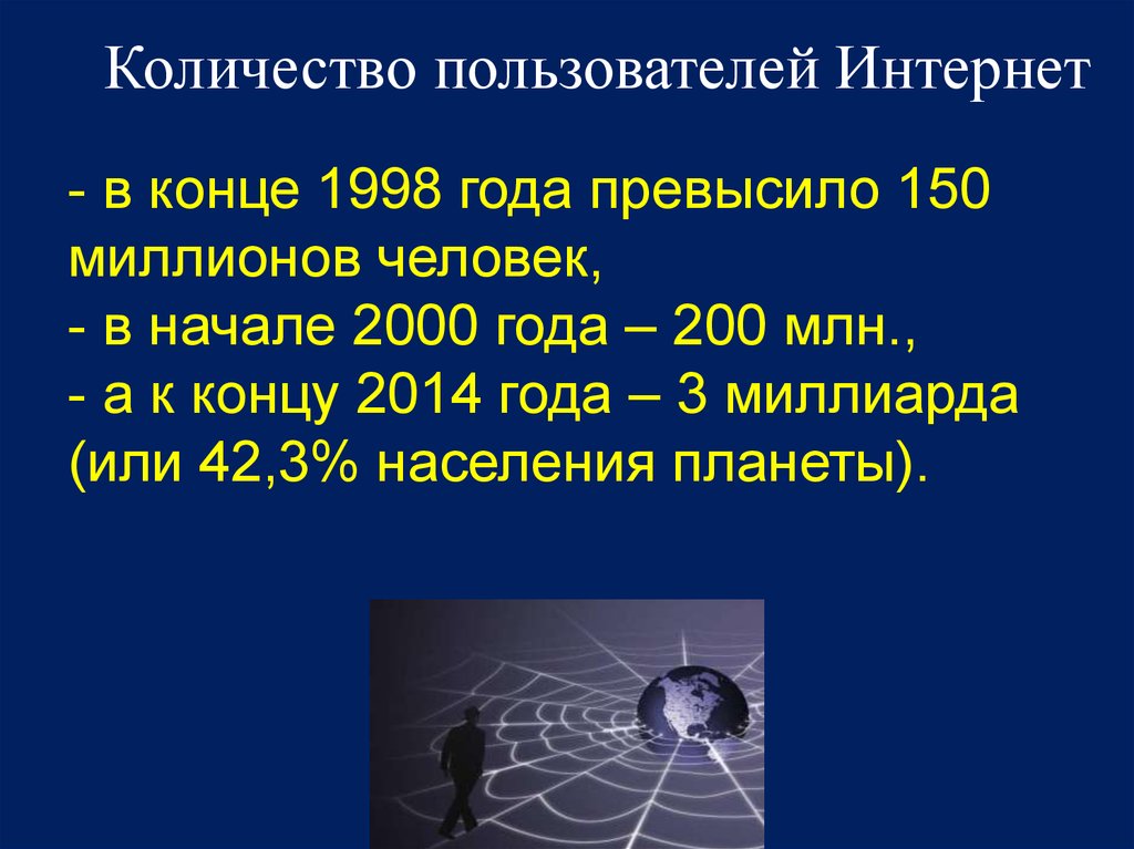 Количество пользователей Интернет- в конце 1998 года превысило 150