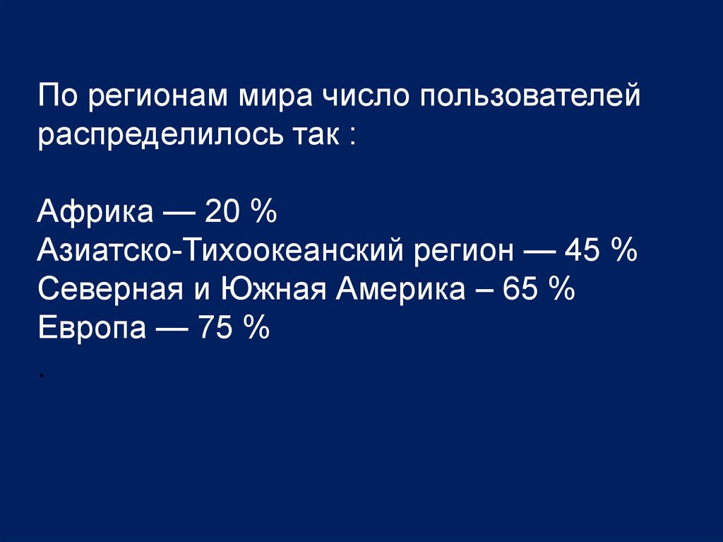 По регионам мира число пользователейраспределилось так :