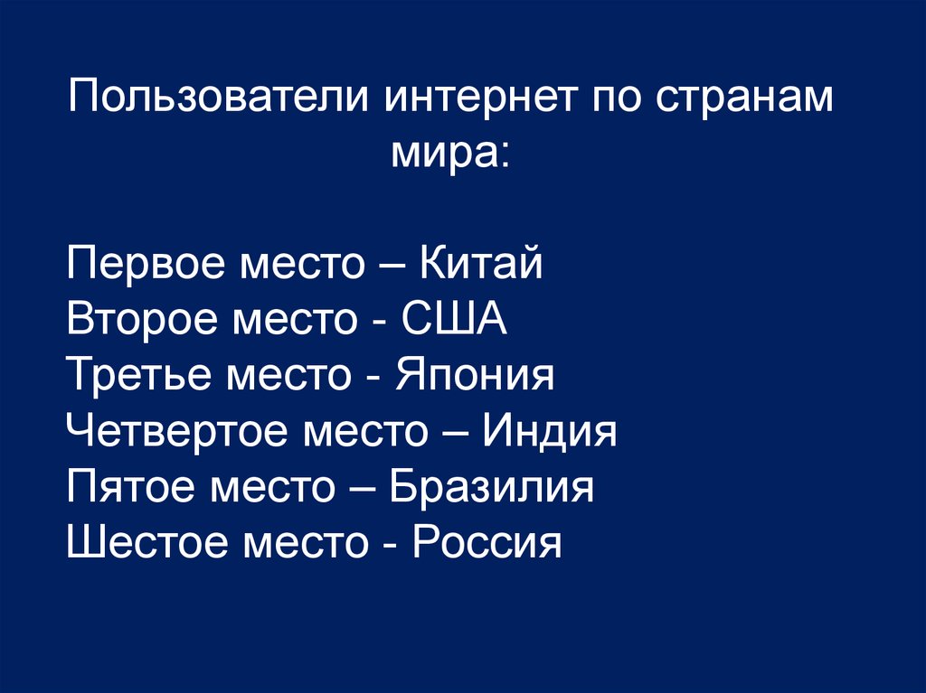 Пользователи интернет по странаммира: