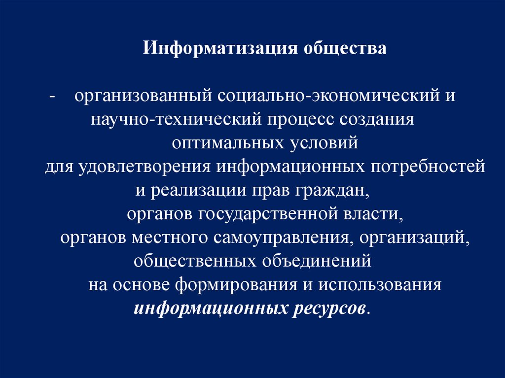Информатизация общества- организованный социально-экономический и