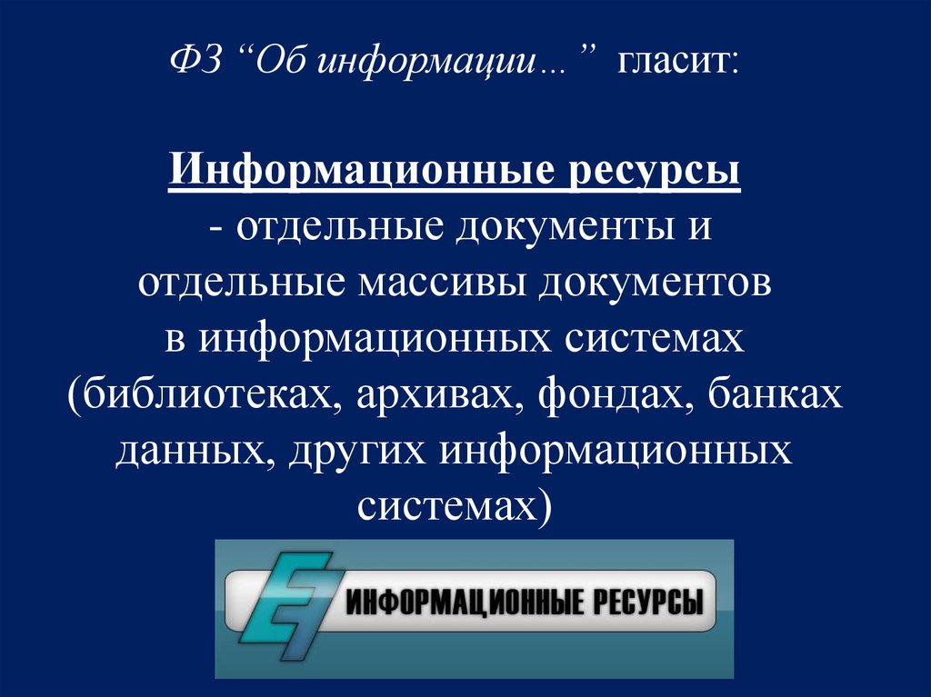 ФЗ “Об информации…” гласит:Информационные ресурсы