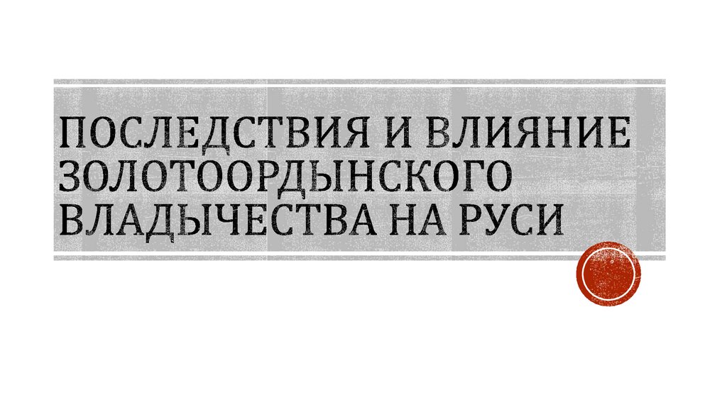 1. Последствия и влияние золотоордынского владычества на руси
