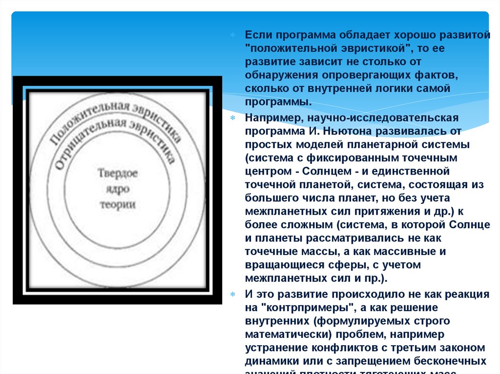 Если программа обладает хорошо развитой"положительной эвристикой", то ее