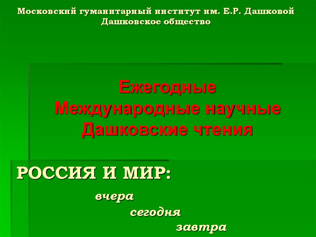 Дашковские чтенияПроходят ежегодно в конце марта