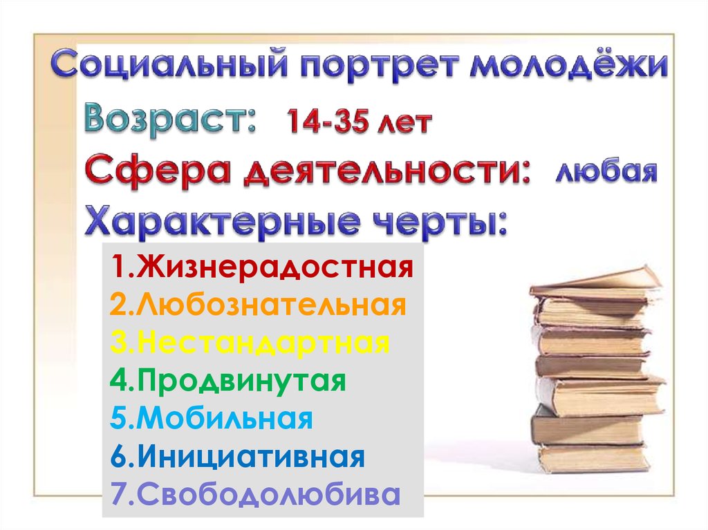 1.Характеризовать молодёжь