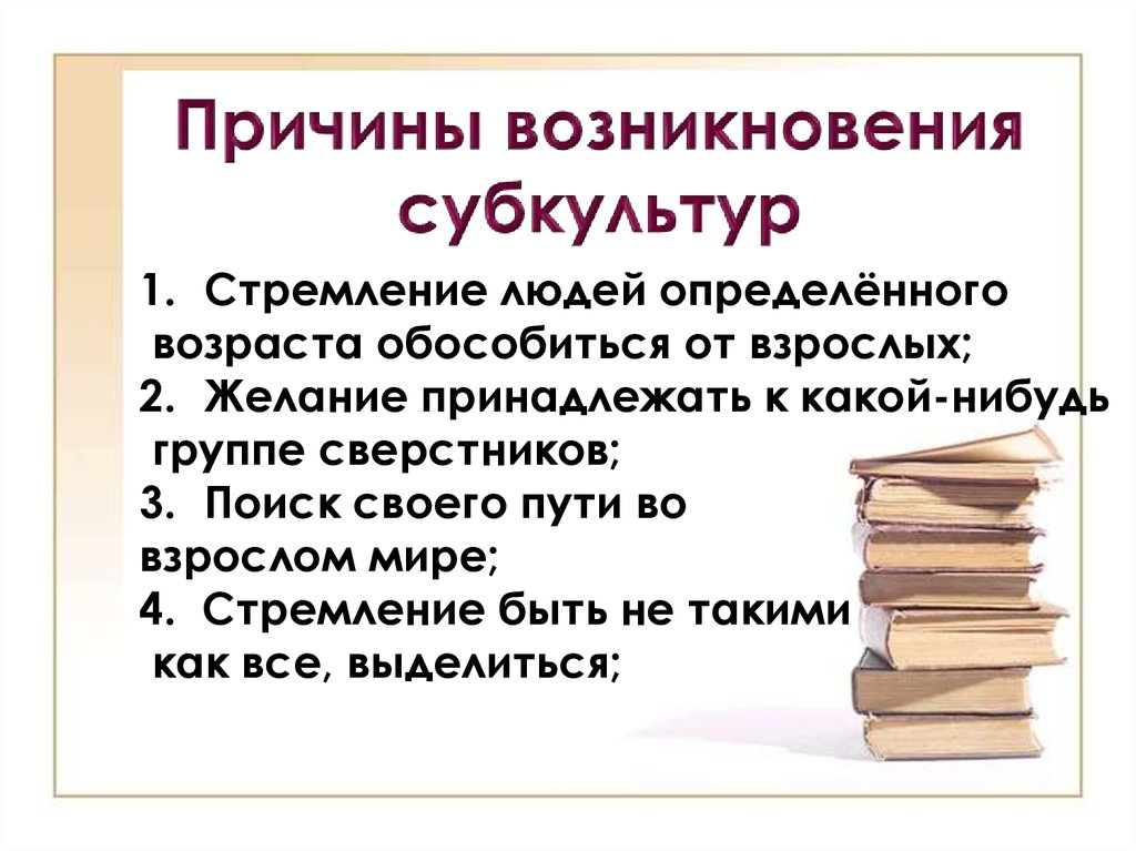 1. Стремление людей определённоговозраста обособиться от взрослых;