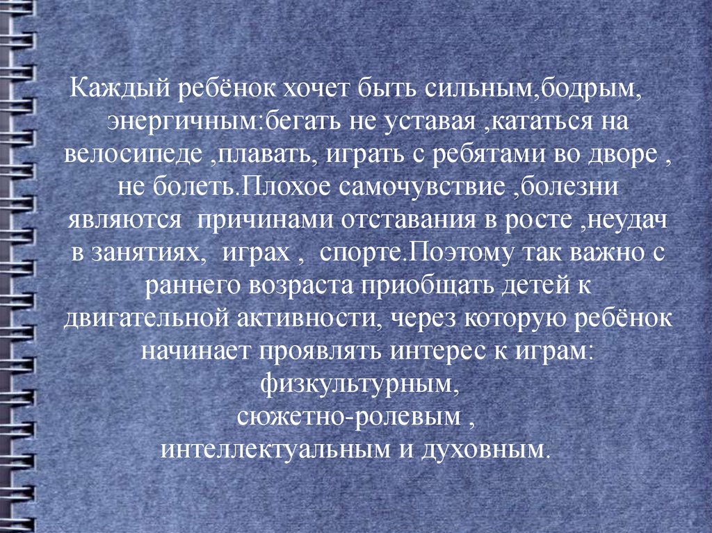 в занятиях, играх , спорте.Поэтому так важно с
