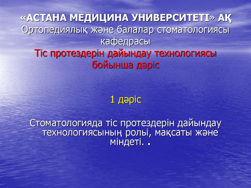 1. «АСТАНА МЕДИЦИНА УНИВЕРСИТЕТІ» АЌ Ортопедиялыќ жјне балалар стоматологиясы кафедрасы Тіс протездерін дайындау технологиясы