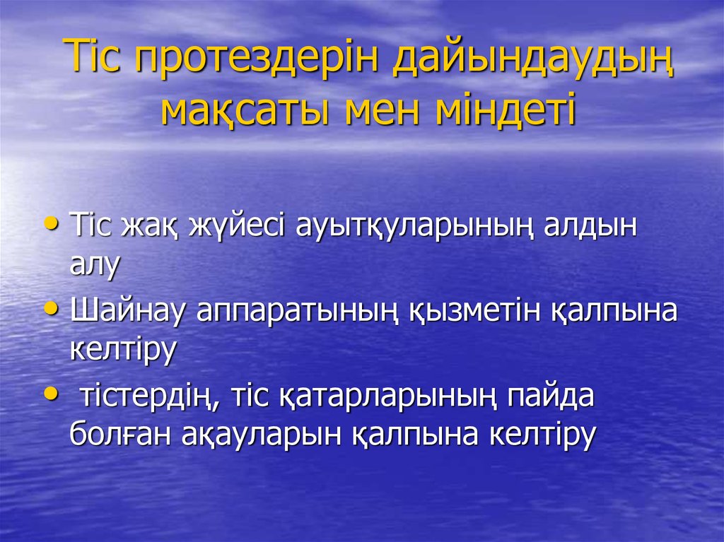 Тіс протездерін дайындаудыңмақсаты мен міндеті