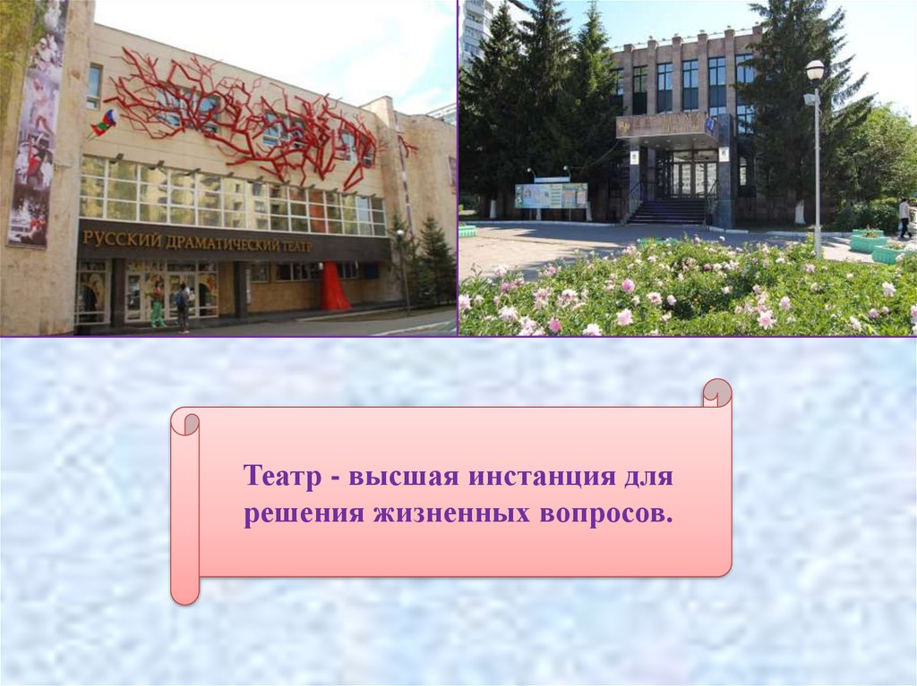 Театр - высшая инстанция длярешения жизненных вопросов.
