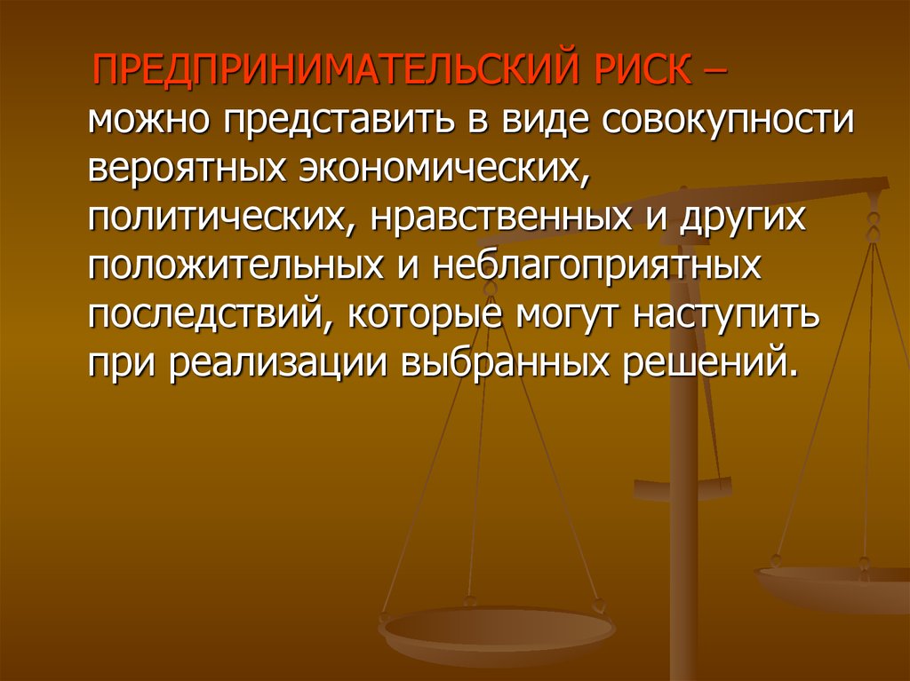 ПРЕДПРИНИМАТЕЛЬСКИЙ РИСК –можно представить в виде совокупности