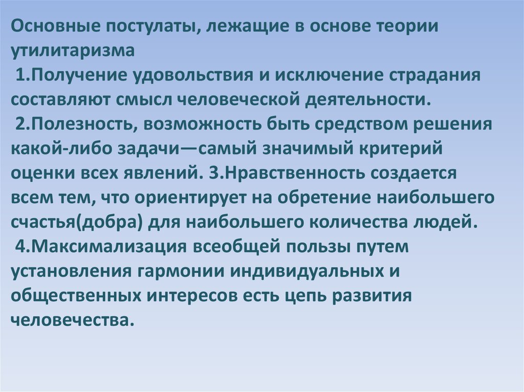 Основные постулаты, лежащие в основе теорииутилитаризма