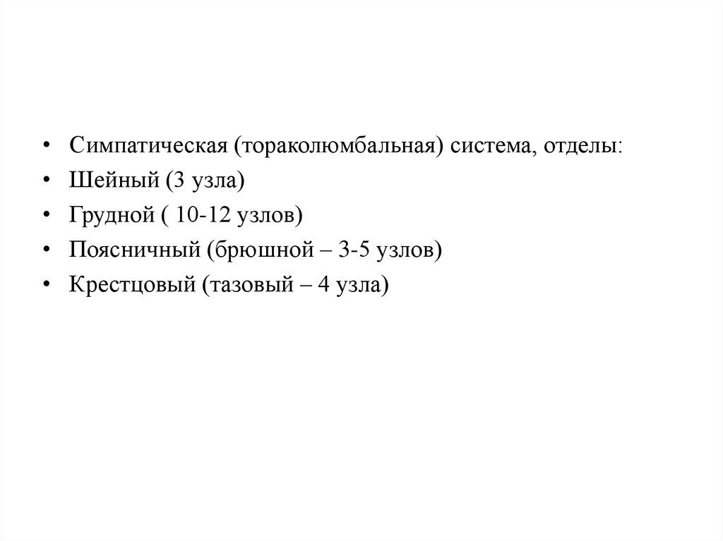 Симпатическая (тораколюмбальная) система, отделы:
