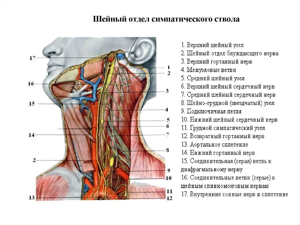 (паравертебральные нервные узлы – 20-25 узлов)