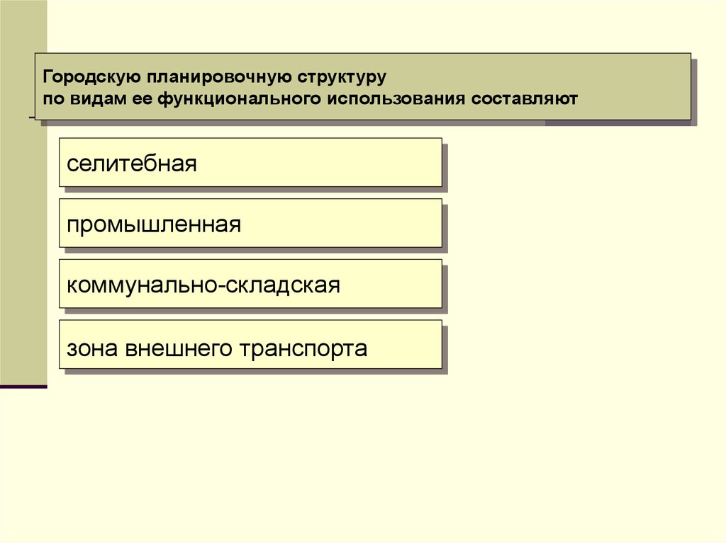 Городскую планировочную структурупо видам ее функционального использования составляют