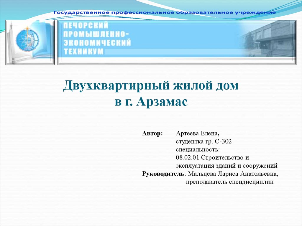 Государственное профессиональное образовательное учреждениеДвухквартирный жилой дом