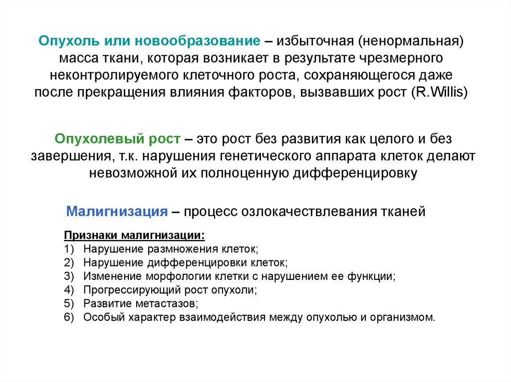 Опухоль или новообразование – избыточная (ненормальная)масса ткани, которая возникает в результате чрезмерного