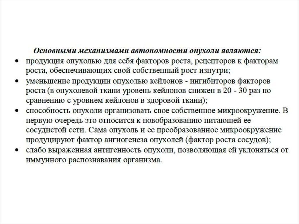 6) Особый характер взаимодействия между опухолью и организмом.