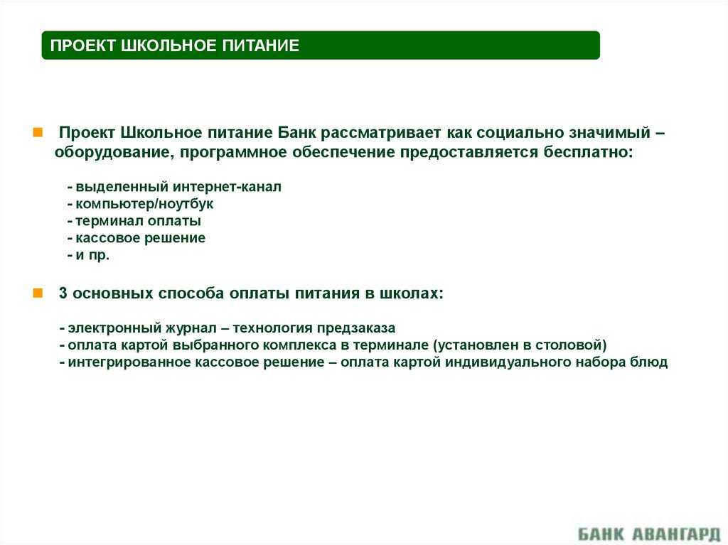 ПРОЕКТ ШКОЛЬНОЕ ПИТАНИЕПроект Школьное питание Банк рассматривает как социально значимый –