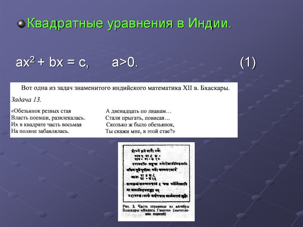 Квадратные уравнения в Индии.ах2 + bх = с,