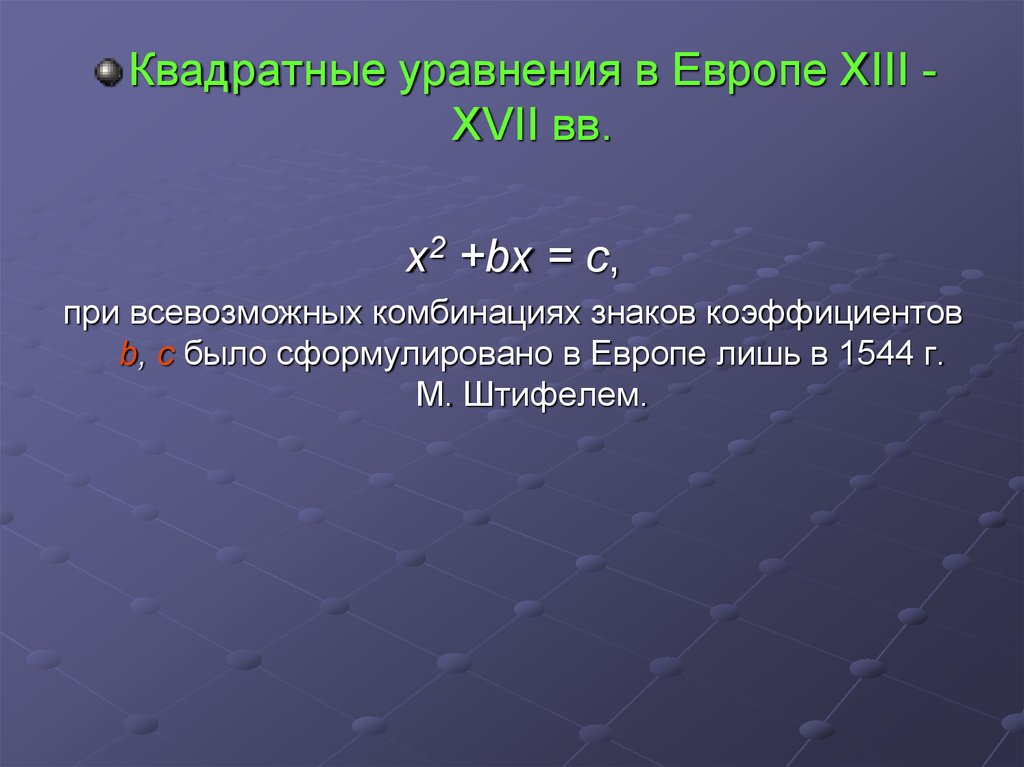 Квадратные уравнения в Европе ХIII ХVII вв.х2 +bх = с,