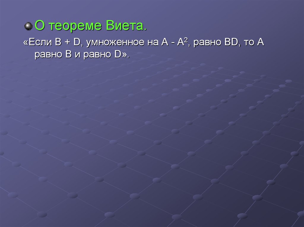 О теореме Виета.«Если В + D, умноженное на А - А2, равно ВD, то А