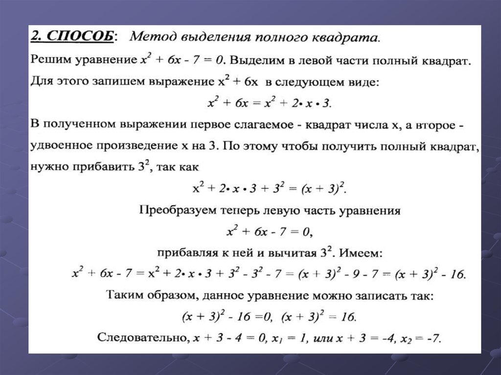 Способы решения квадратных уравнений