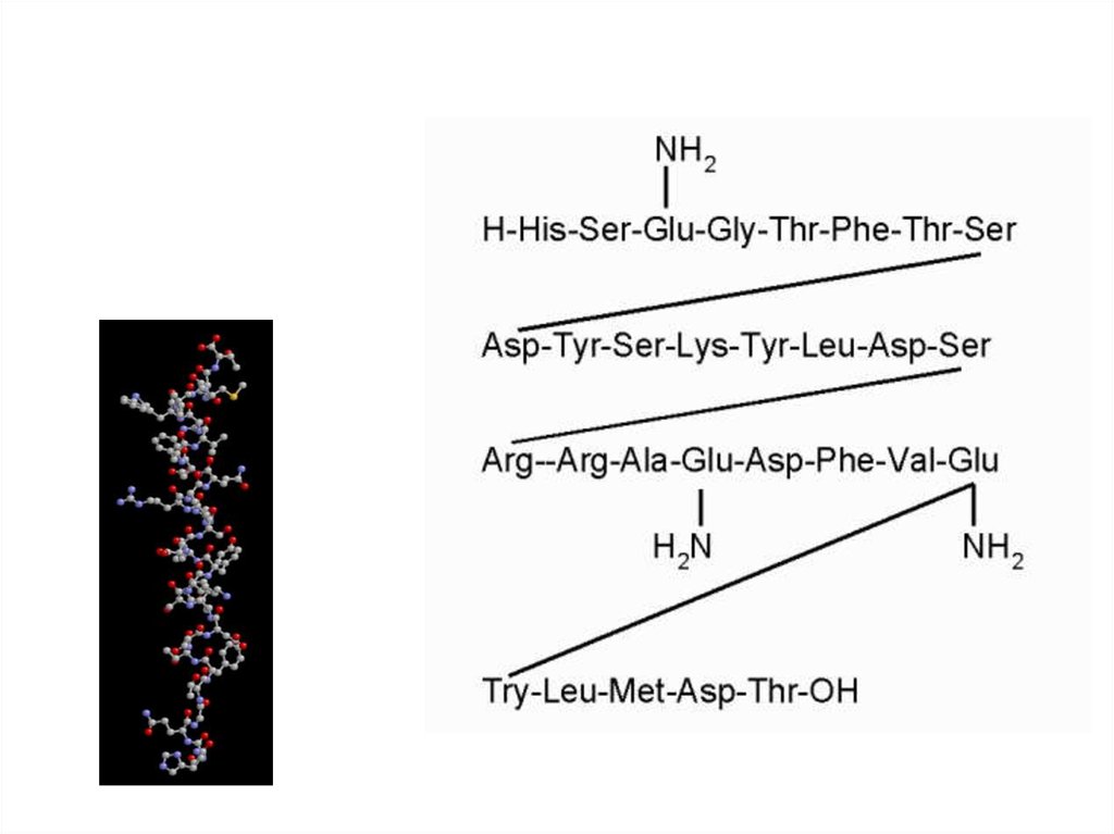 • Молекула инсулина построена из двухпептидных цепей: цепь А содержит 21
