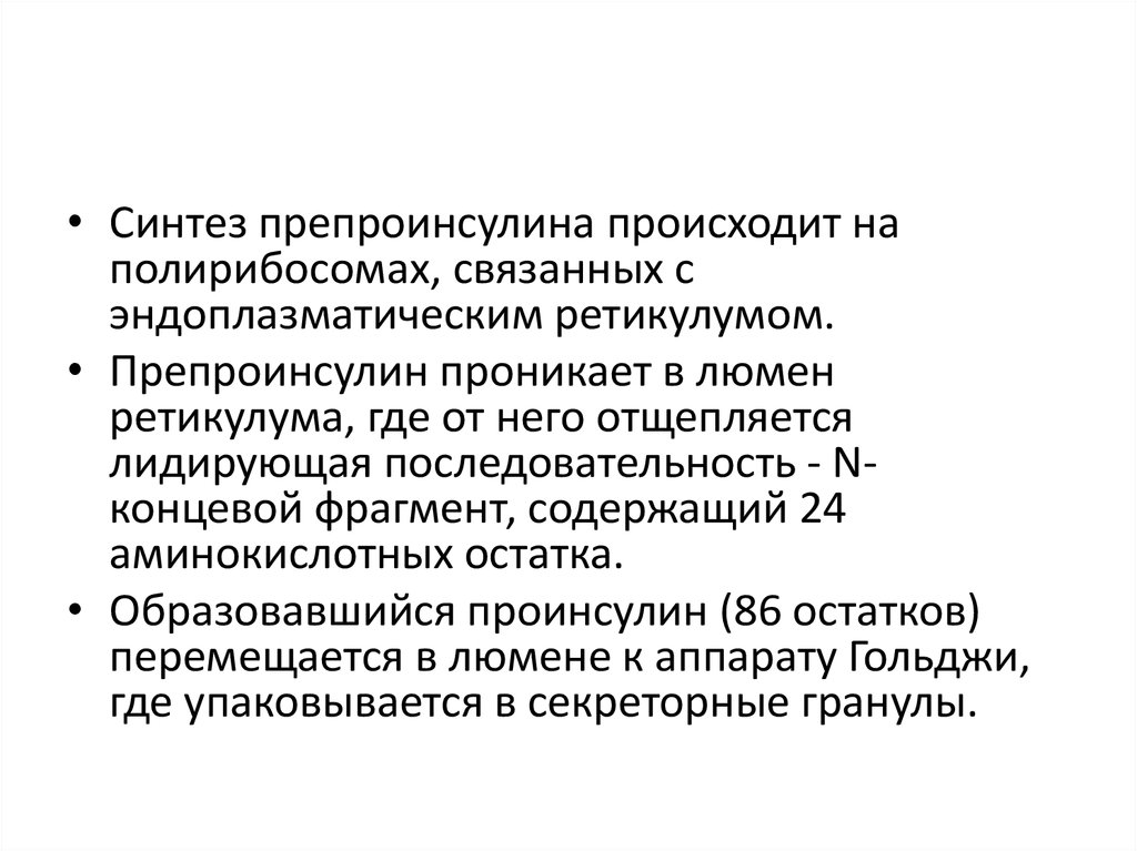 • Синтез препроинсулина происходит наполирибосомах, связанных с
