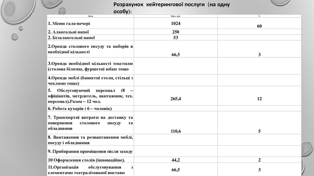 • ПЕРЕЛІК ЗАХОДІВ З КЕЙТЕРИНГОВИХ ПОСЛУГ6.