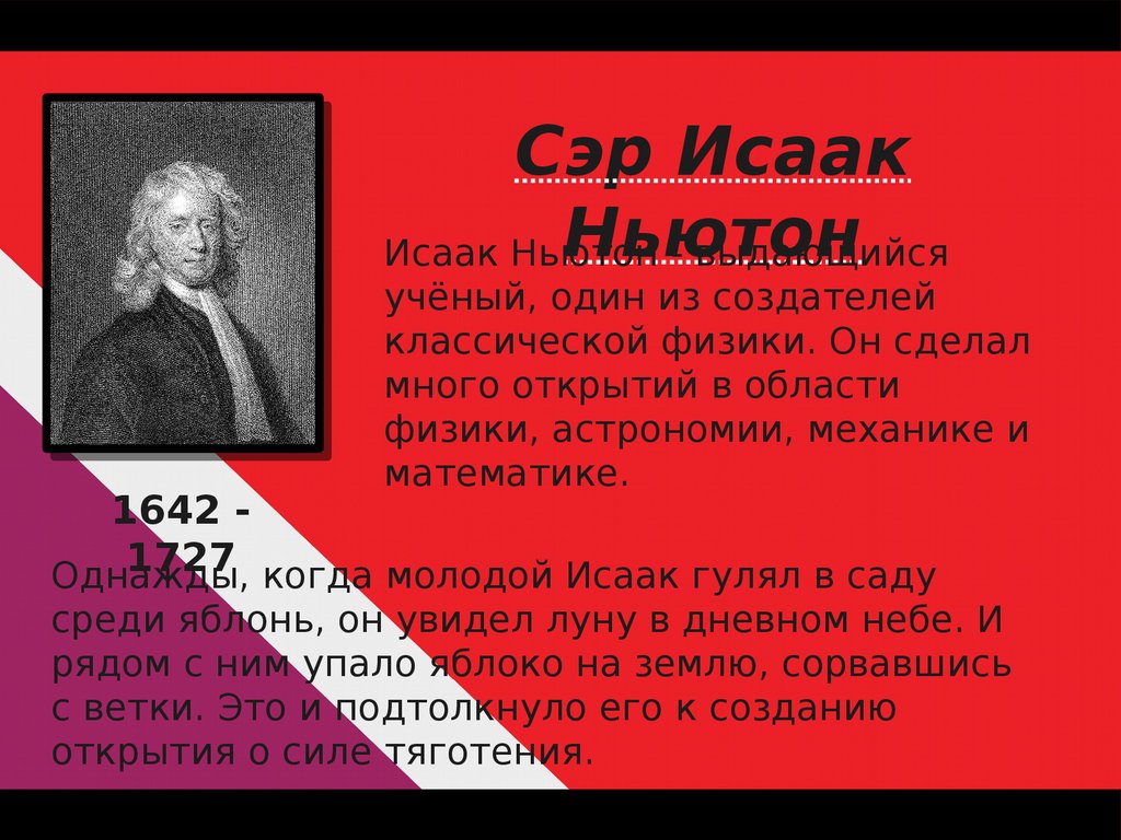 1642 1727 когда молодой Исаак гулял в саду