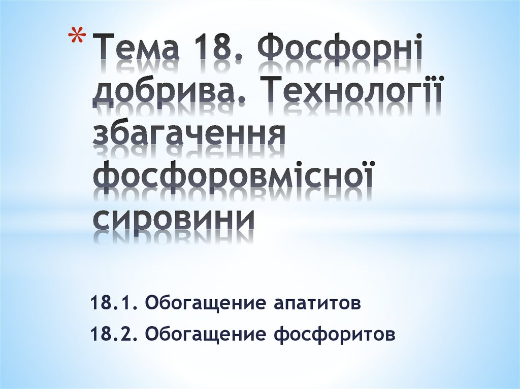 1. Тема 18. Фосфорні добрива. Технології збагачення фосфоровмісної сировини