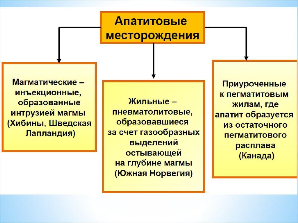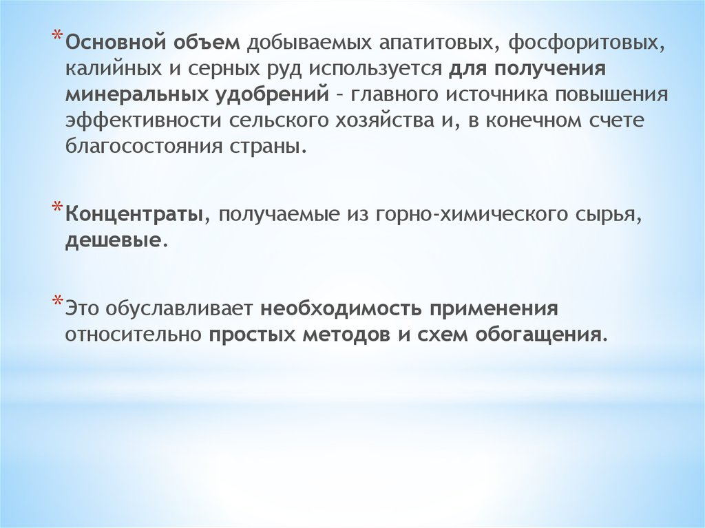 * Основной объем добываемых апатитовых, фосфоритовых,калийных и серных руд используется для получения