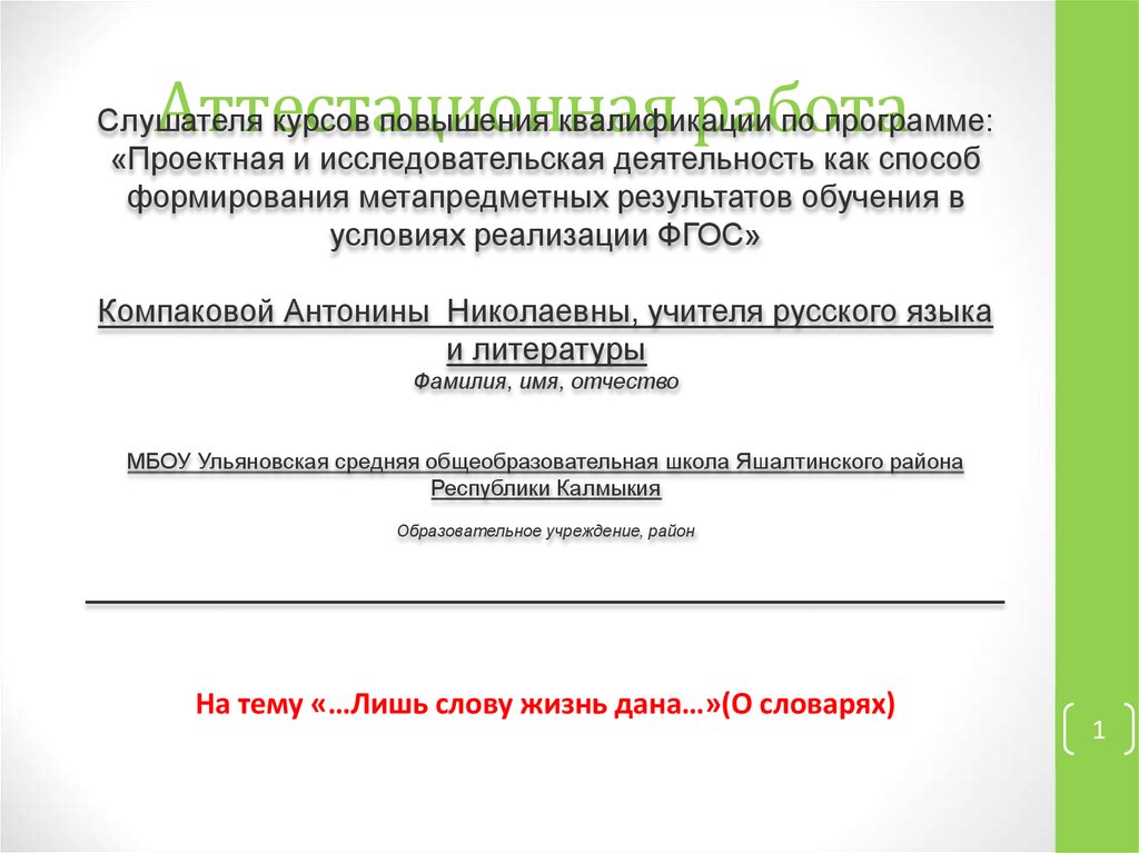 Аттестационная работа. «…Лишь слову жизнь дана…» (О словарях)