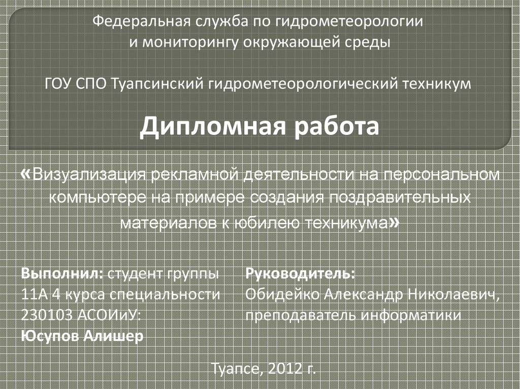 с этим, руководителем дипломного проекта передо мной были