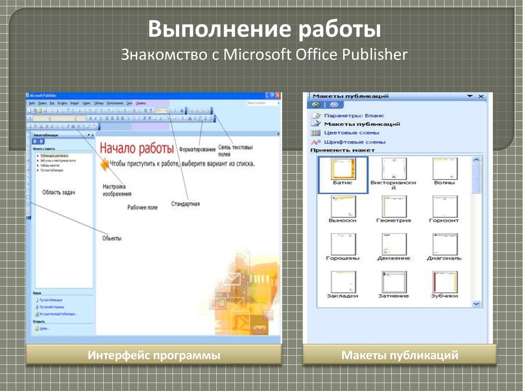 Выполнение работыЗнакомство с Microsoft Office Publisher