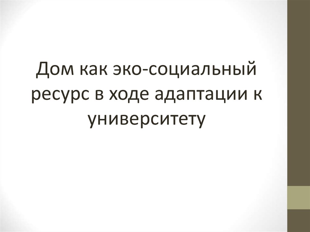 • Дом – важный эко-социальный ресурс.• Образ дома многослоен, в силу чего может оказывать