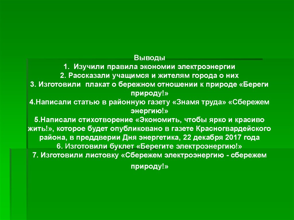 7. Изготовили листовку «Сбережем электроэнергию - сбережем
