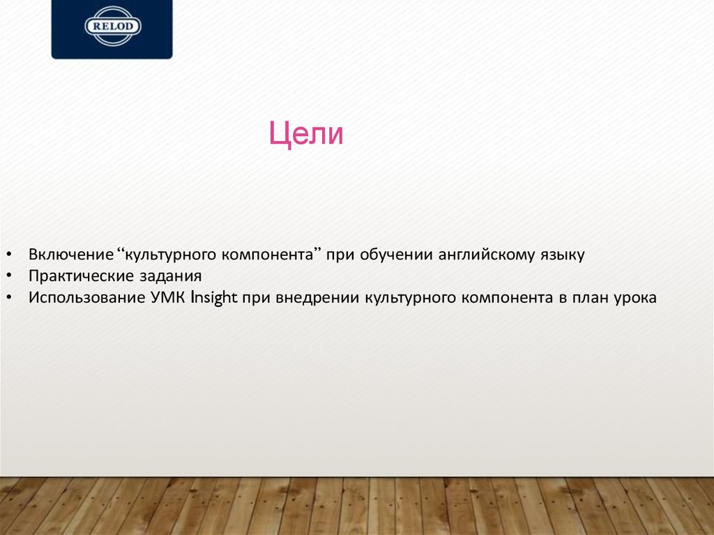 Цели• Включение “культурного компонента” при обучении английскому языку