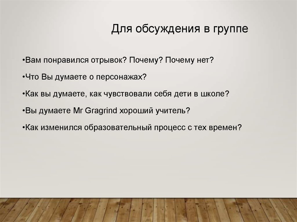 Для обсуждения в группе•Вам понравился отрывок? Почему? Почему нет?