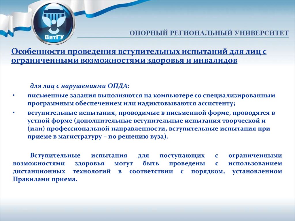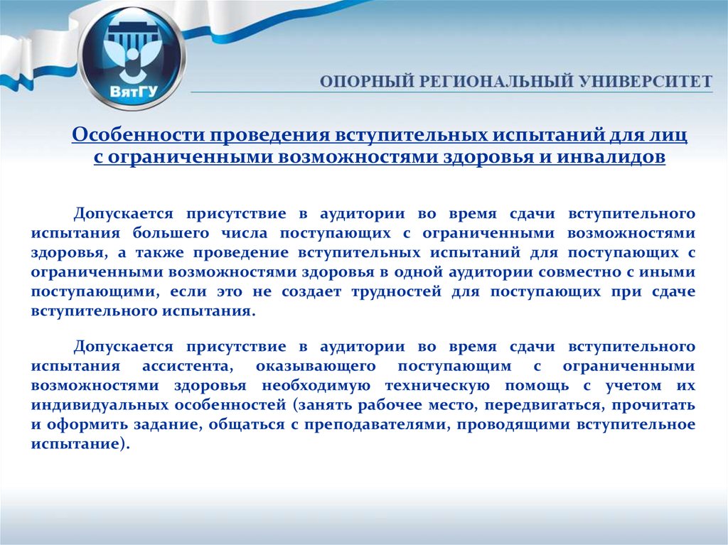 Особенности проведения вступительных испытаний для лиц сограниченными возможностями здоровья и инвалидов