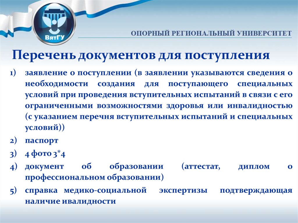 Перечень документов для поступления1)