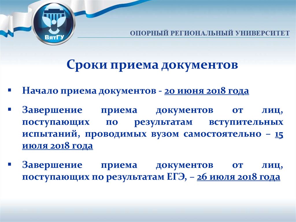 Сроки приема документовНачало приема документов - 20 июня 2018 года