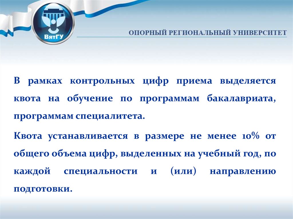 В рамках контрольных цифр приема выделяетсяквота на обучение по программам бакалавриата,