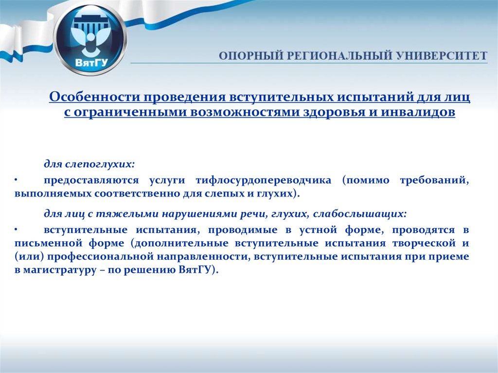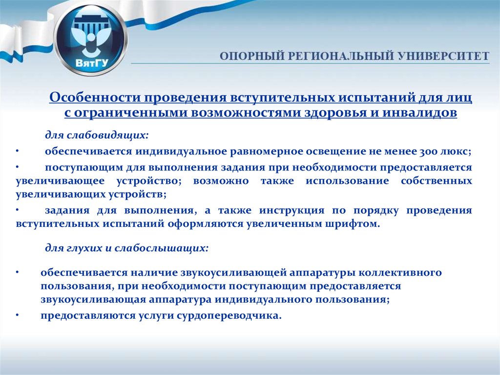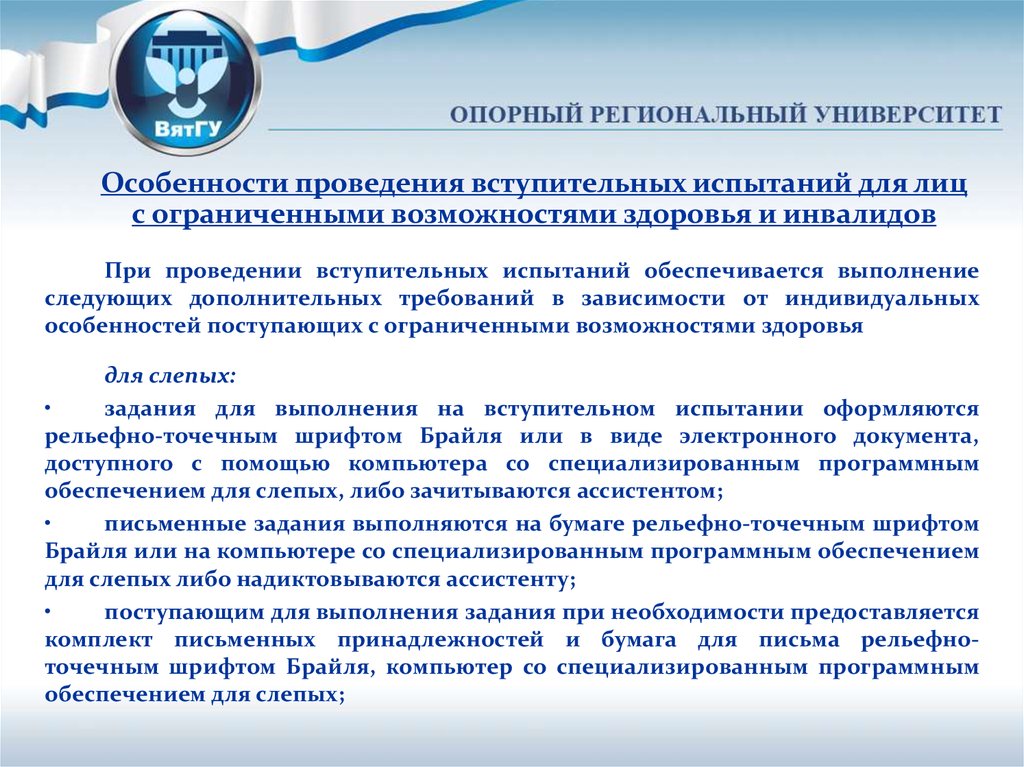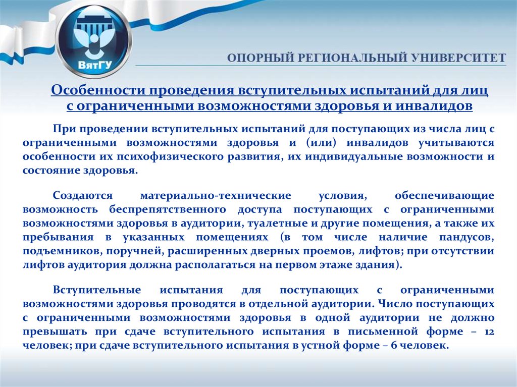 Особенности проведения вступительных испытаний для лицс ограниченными возможностями здоровья и инвалидов