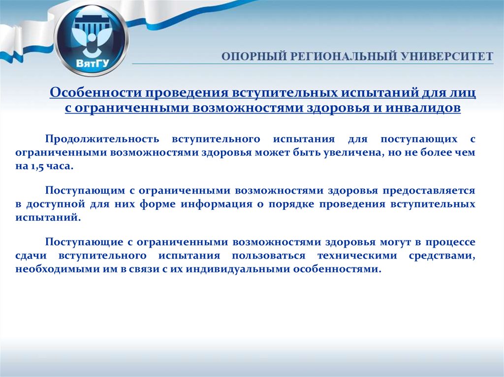испытания большего числа поступающих с ограниченными возможностями