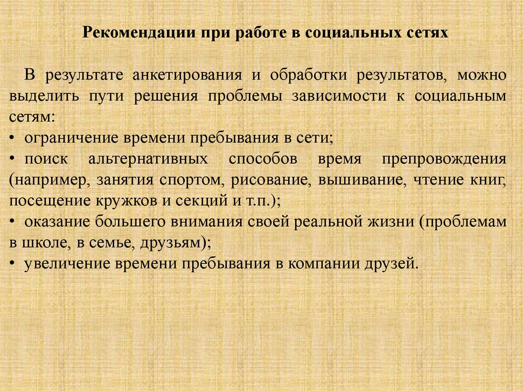 выделить пути решения проблемы зависимости к социальным