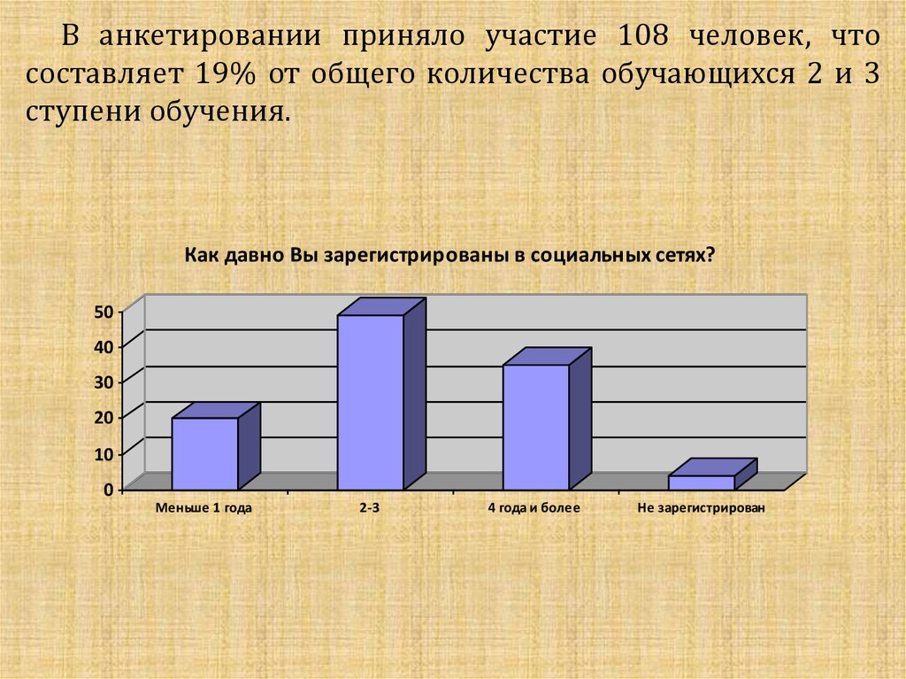 Как давно Вы зарегистрированы в социальных сетях?