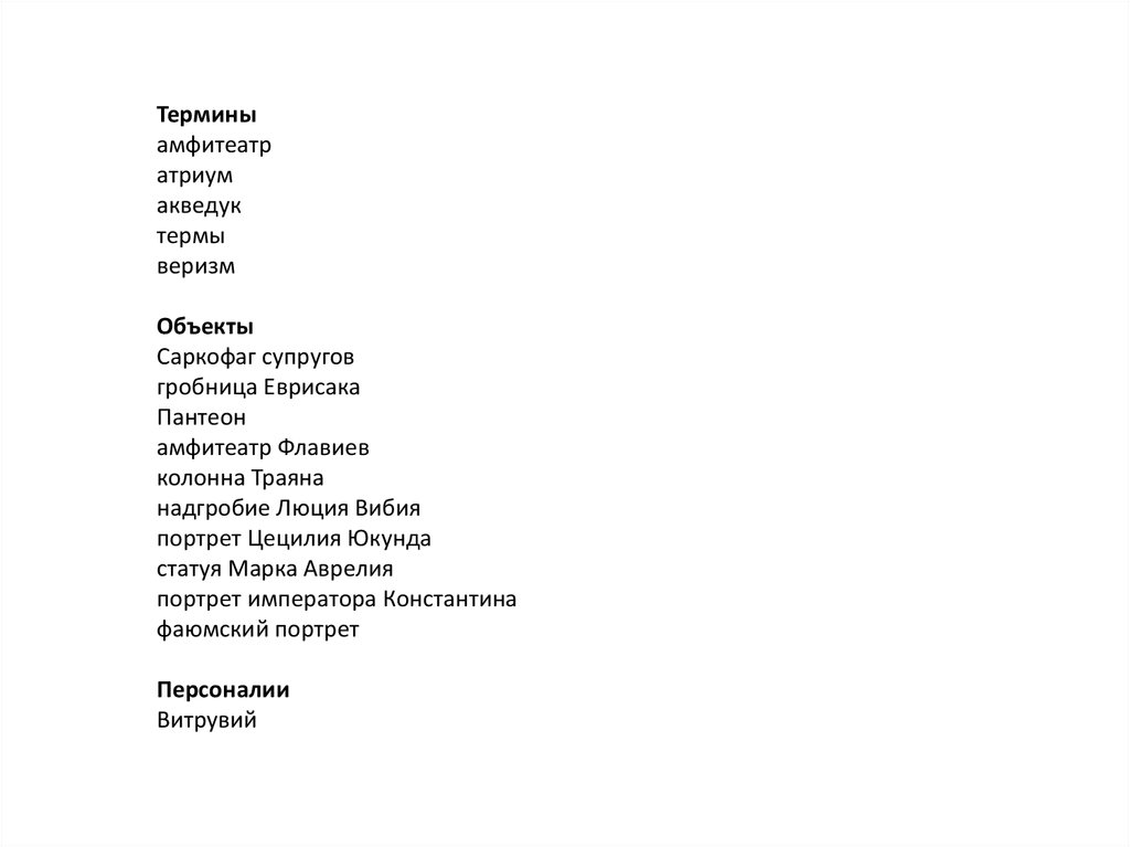 Достижения: римское право, купол, арка, бетон, батальонная армия,