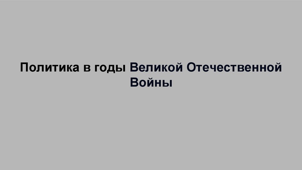 Политика в годы Великой ОтечественнойВойны